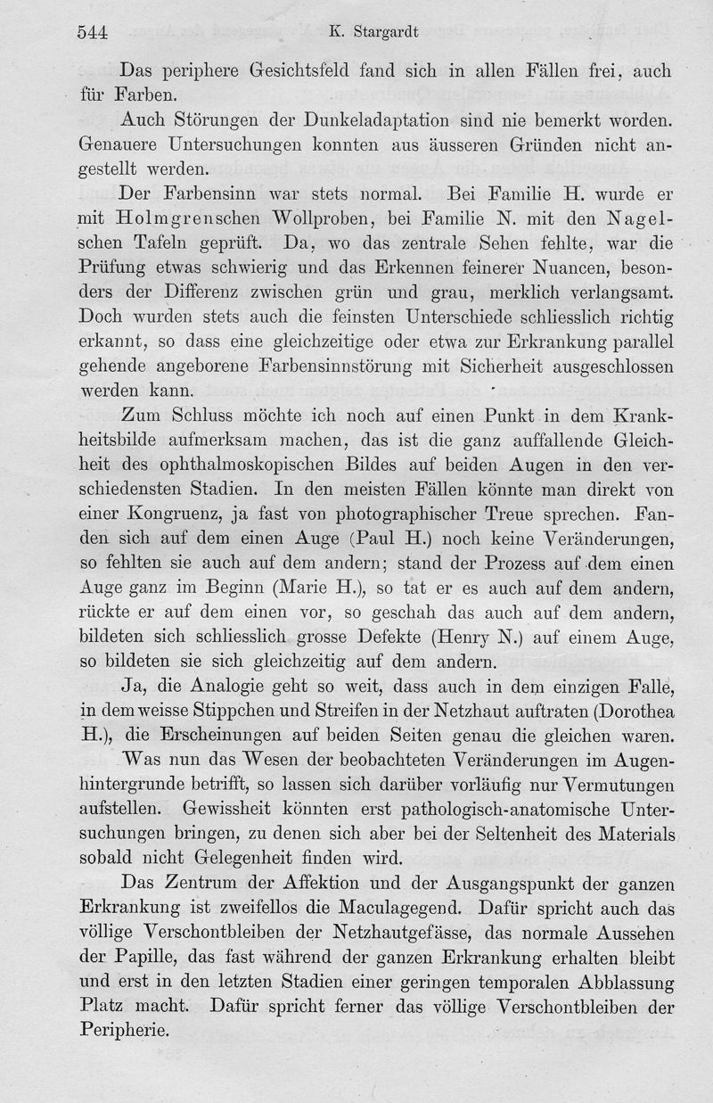 Über familiäre, progressive Degeneration in der Maculagegend des Auges