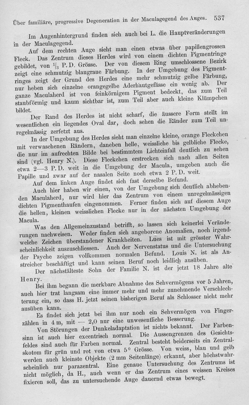 Über familiäre, progressive Degeneration in der Maculagegend des Auges