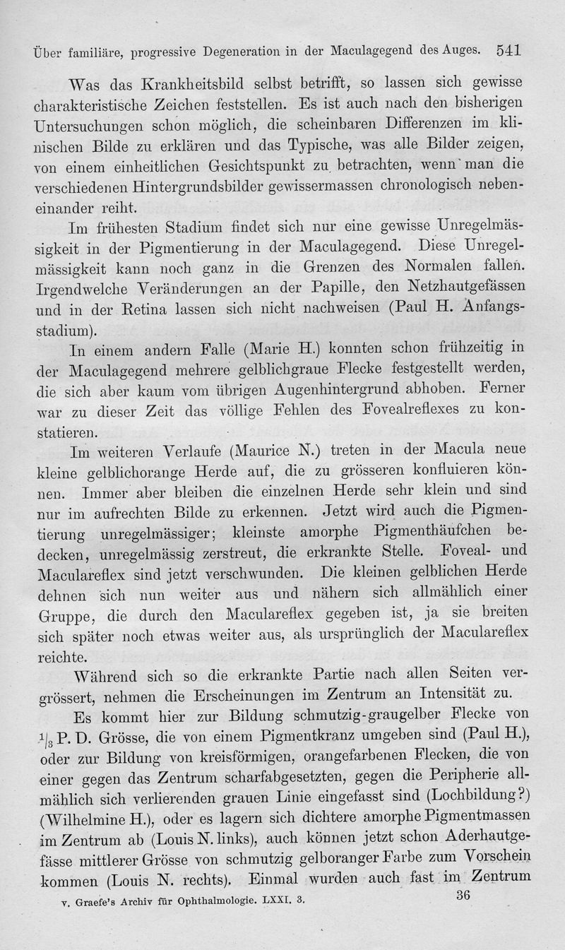 Über familiäre, progressive Degeneration in der Maculagegend des Auges