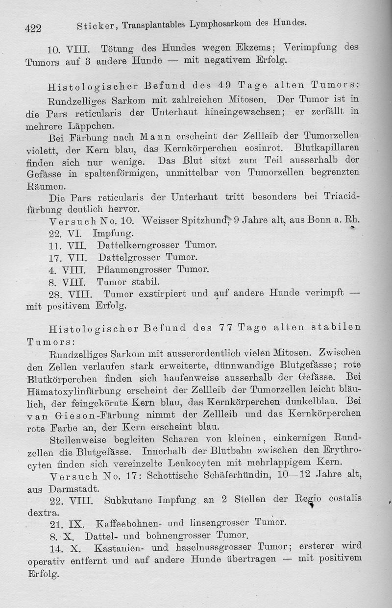 Transplantables Lymphosarkom des Hundes. Ein Beitrag zur Lehre der Krebsübertragbarkeit