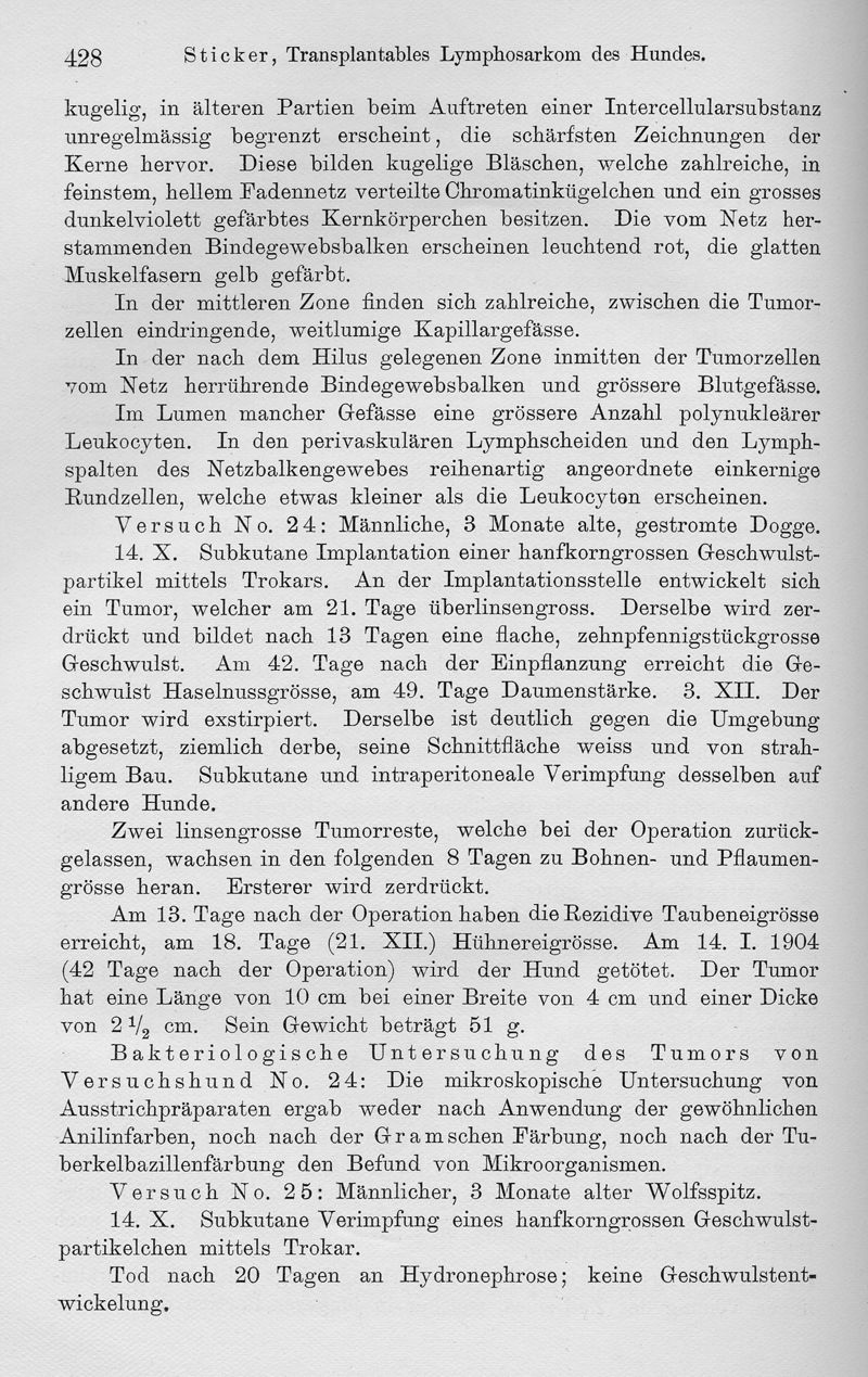 Transplantables Lymphosarkom des Hundes. Ein Beitrag zur Lehre der Krebsübertragbarkeit