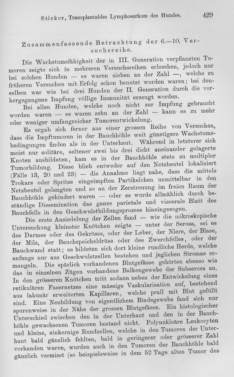 Transplantables Lymphosarkom des Hundes. Ein Beitrag zur Lehre der Krebsübertragbarkeit