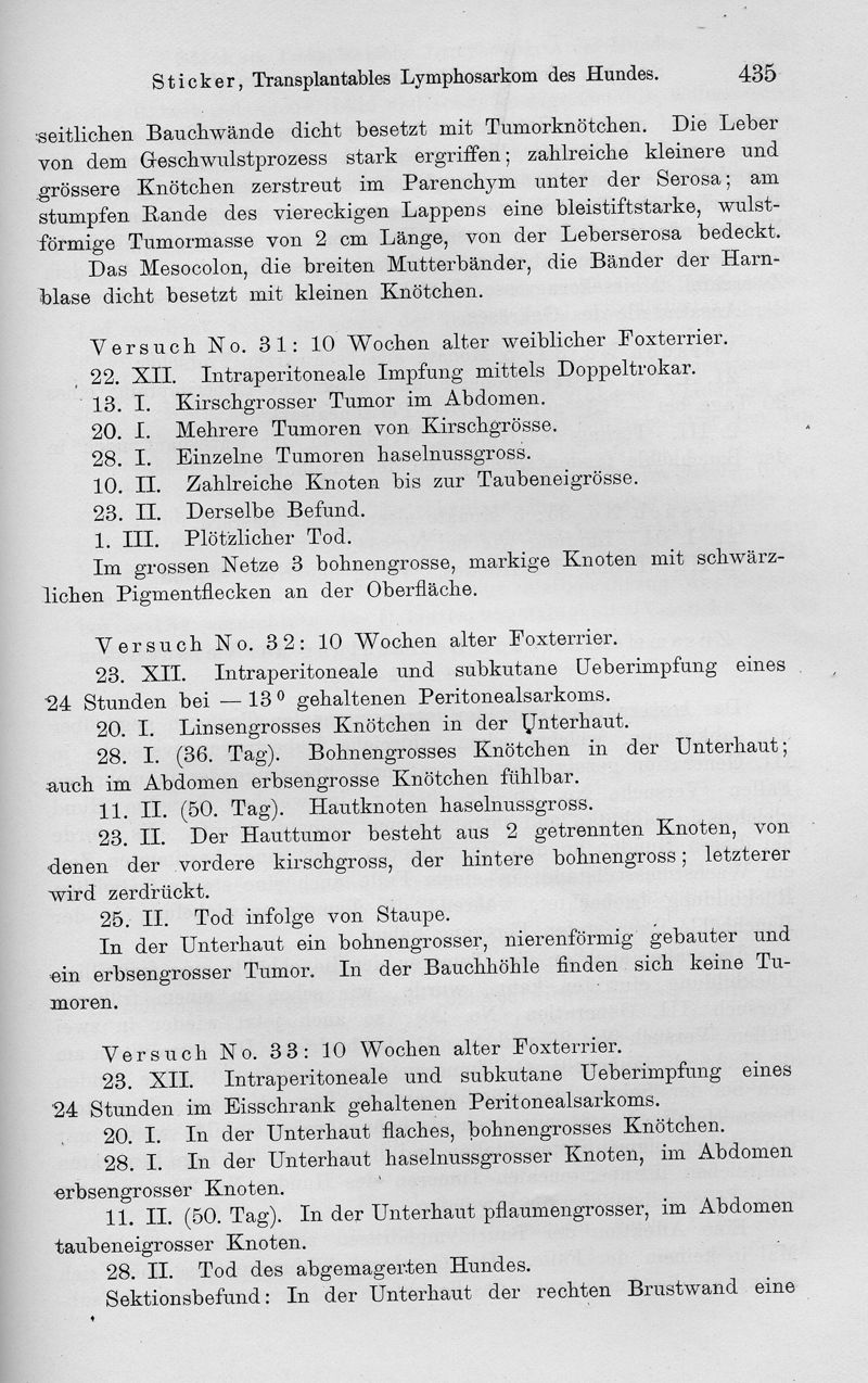 Transplantables Lymphosarkom des Hundes. Ein Beitrag zur Lehre der Krebsübertragbarkeit