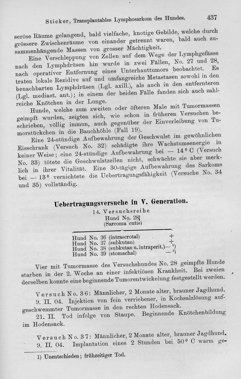 Transplantables Lymphosarkom des Hundes. Ein Beitrag zur Lehre der Krebsübertragbarkeit