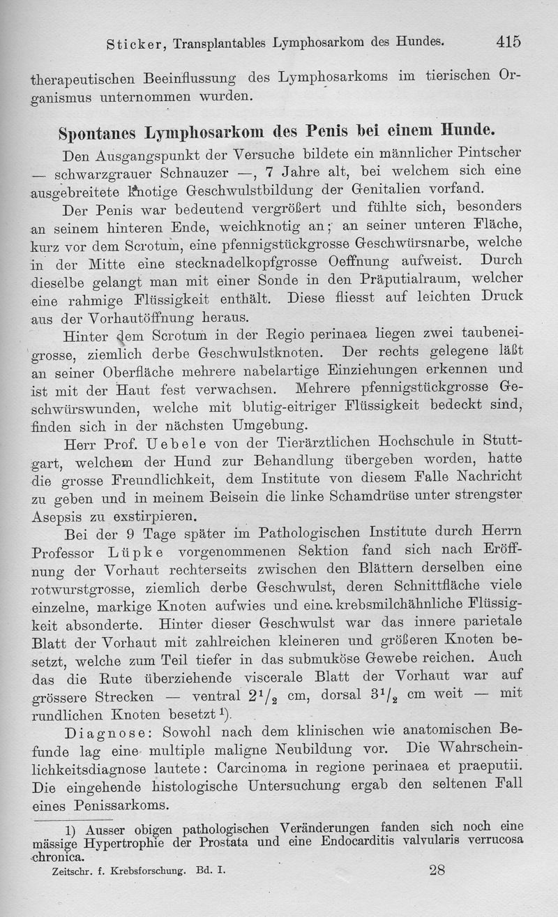 Transplantables Lymphosarkom des Hundes. Ein Beitrag zur Lehre der Krebsübertragbarkeit