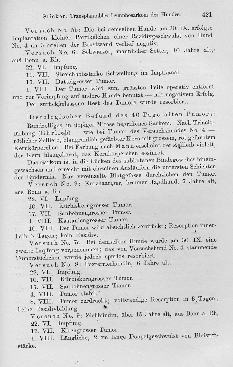 Transplantables Lymphosarkom des Hundes. Ein Beitrag zur Lehre der Krebsübertragbarkeit