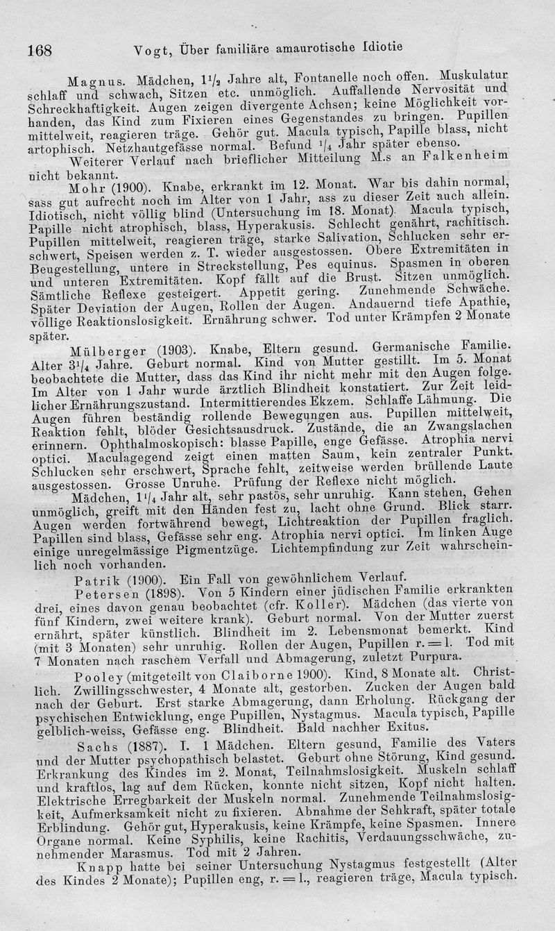 Über familiäre amaurotische Idiotie und verwandte Krankheitsbilder