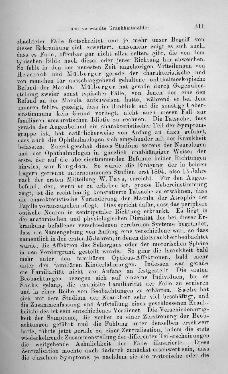 Über familiäre amaurotische Idiotie und verwandte Krankheitsbilder