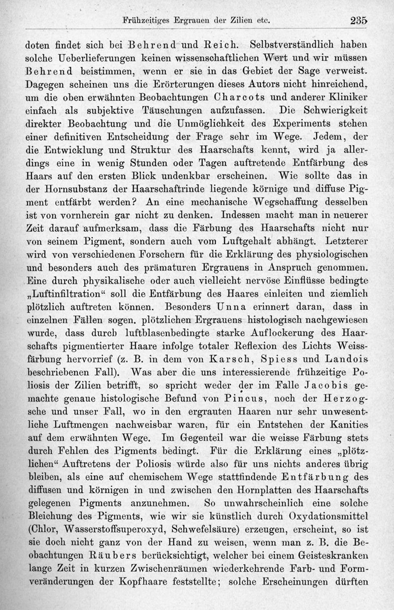 Frühzeitiges Ergrauen der Zilien und Bemerkungen über den sogenanten plötzlichen Eintritt dieser Veränderung