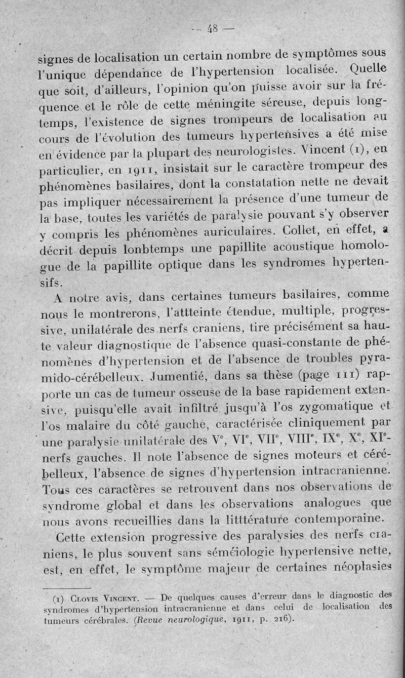 Le syndrome paralytique unilatéral global des nerfs craniens : contribution à l'étude des tumeurs de la base du crâne