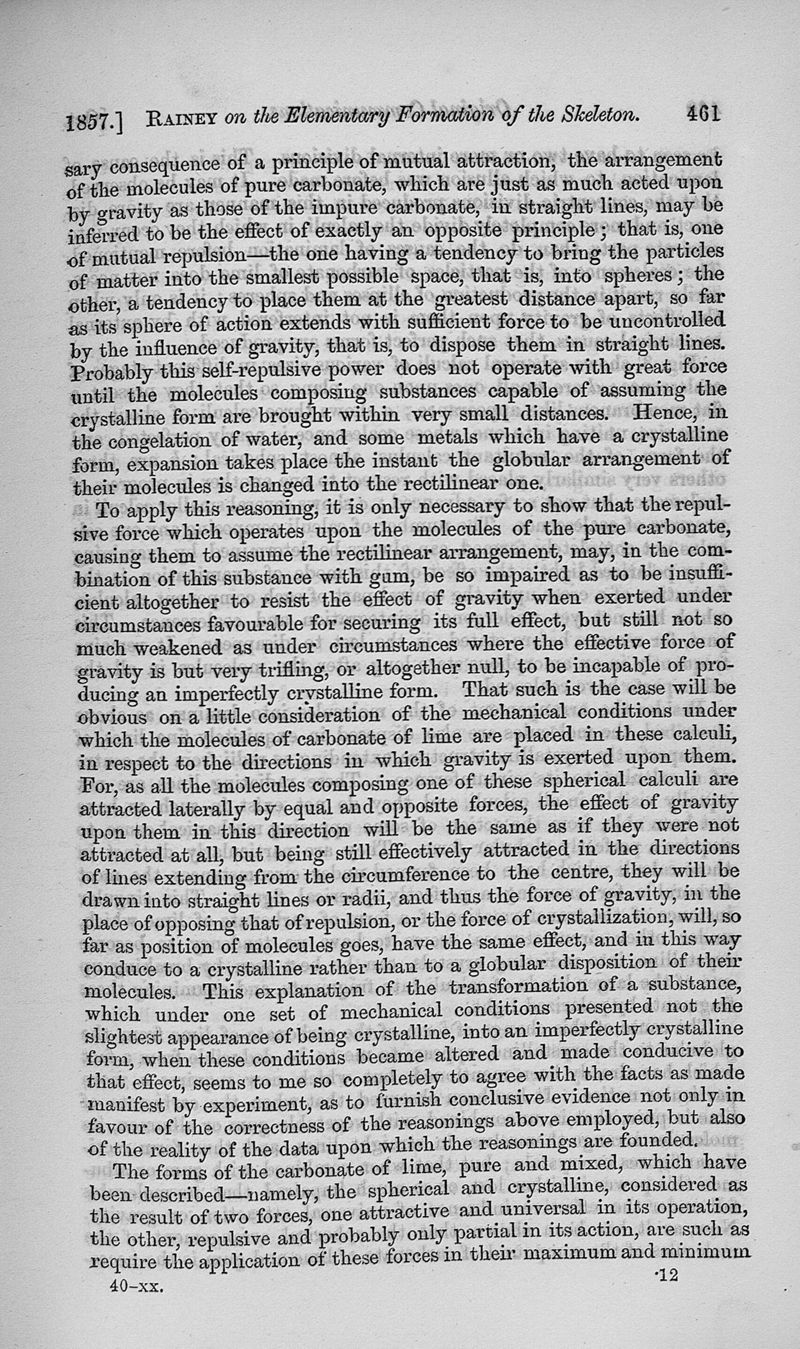 On the formation of the skeletons of animals, and other hard structures formed in connexion with living tissues
