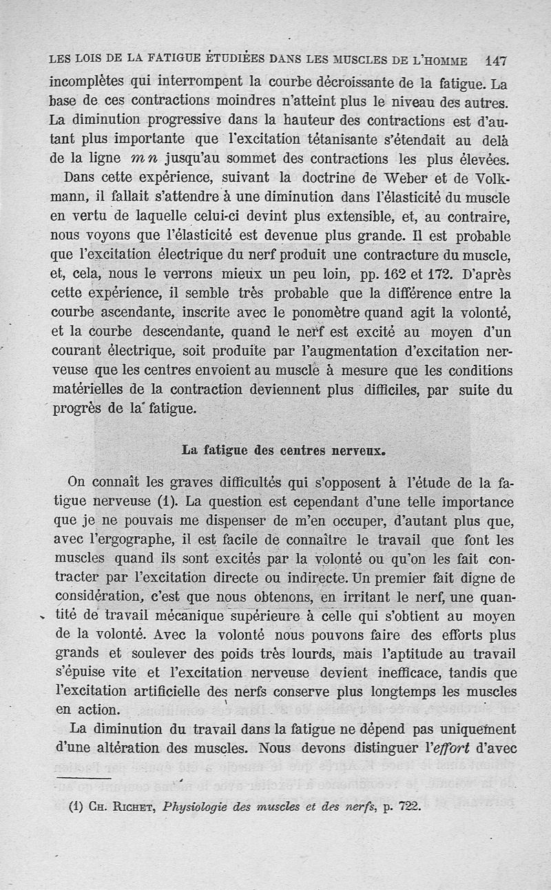 Les lois de la fatigue étudiées dans les muscles de l'homme