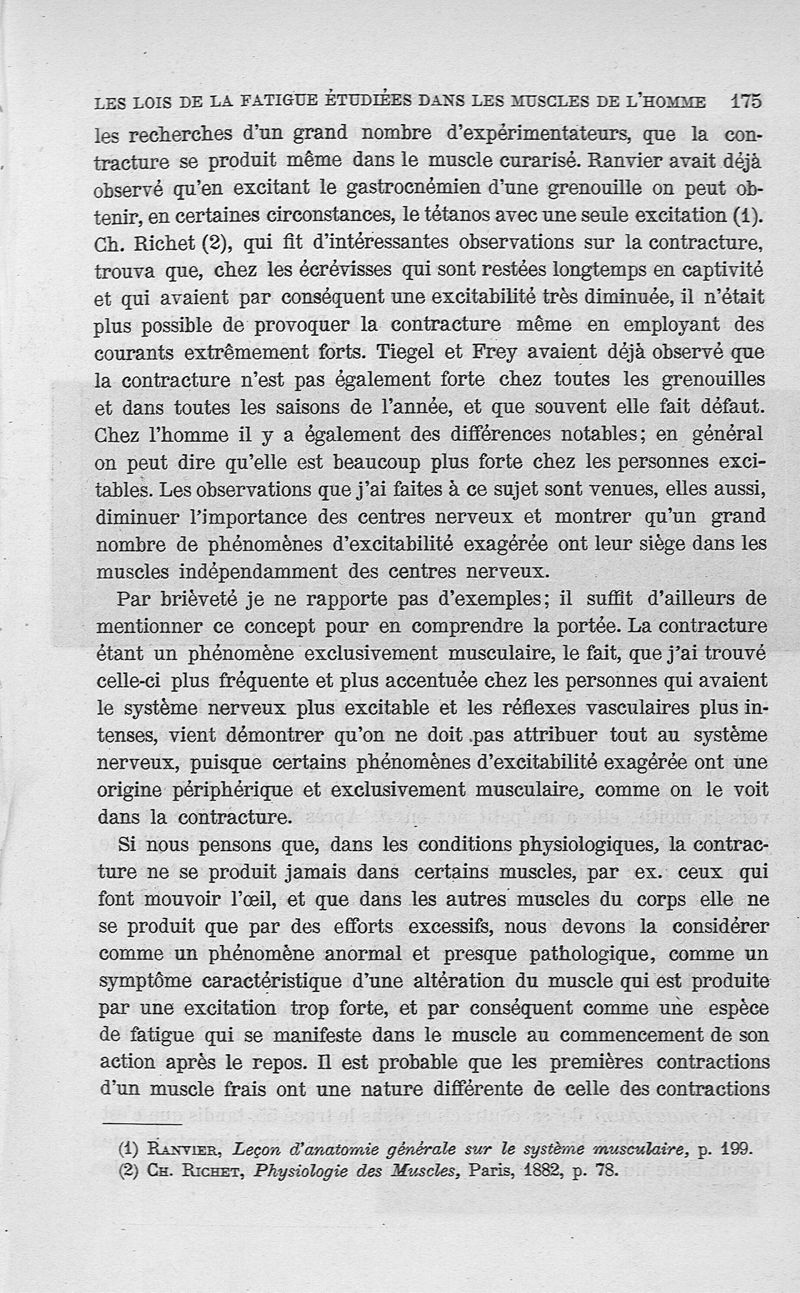 Les lois de la fatigue étudiées dans les muscles de l'homme