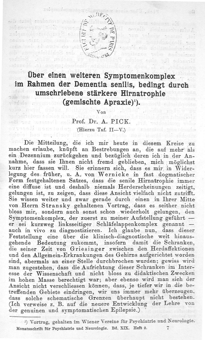 In : Monasschrift für Psychiatrie und der Neurologie,