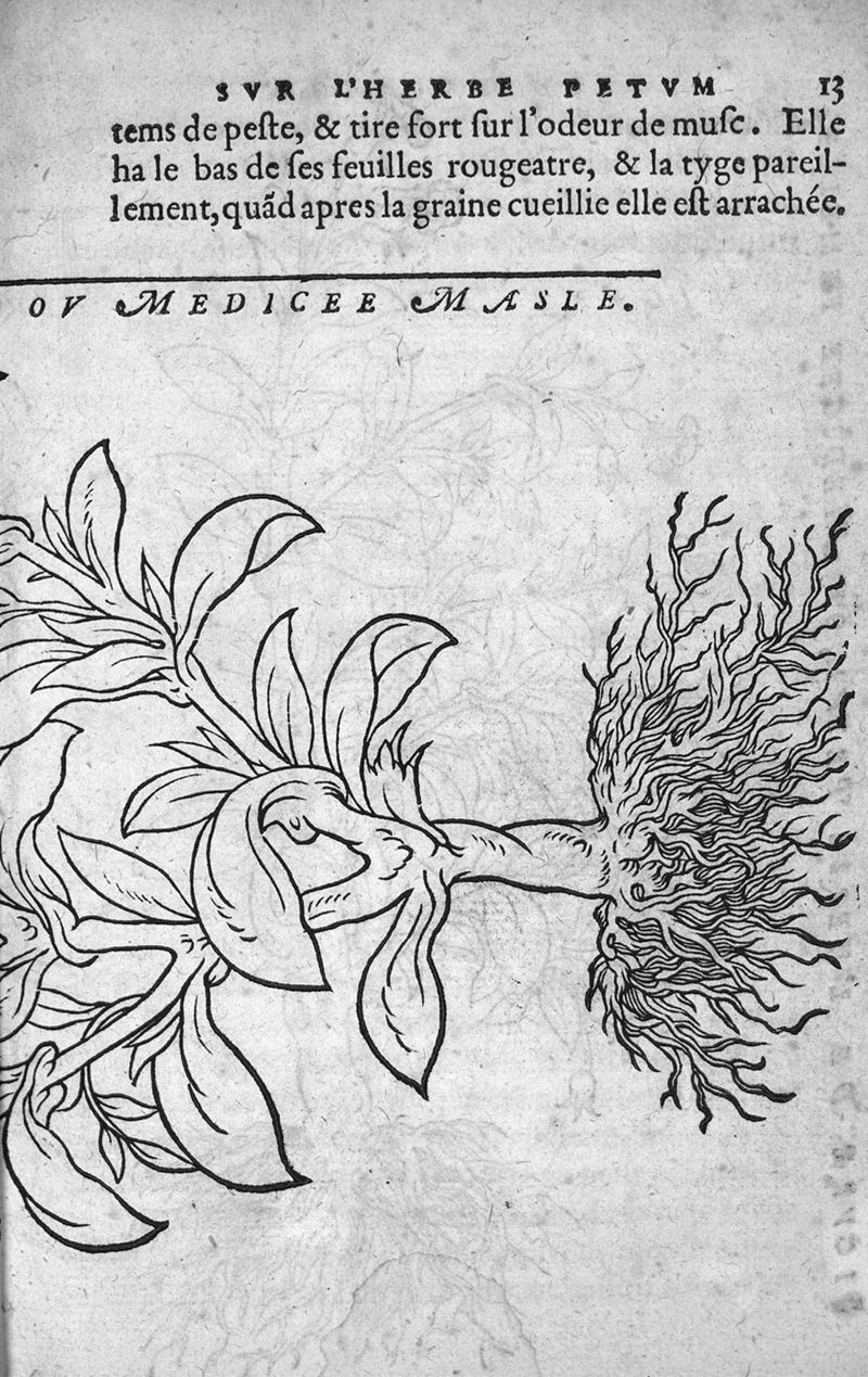 Instruction de la congnoisence des vertus et proprietes de lherbe pettum ditte en France L'herbe de la Royne ou Medicée