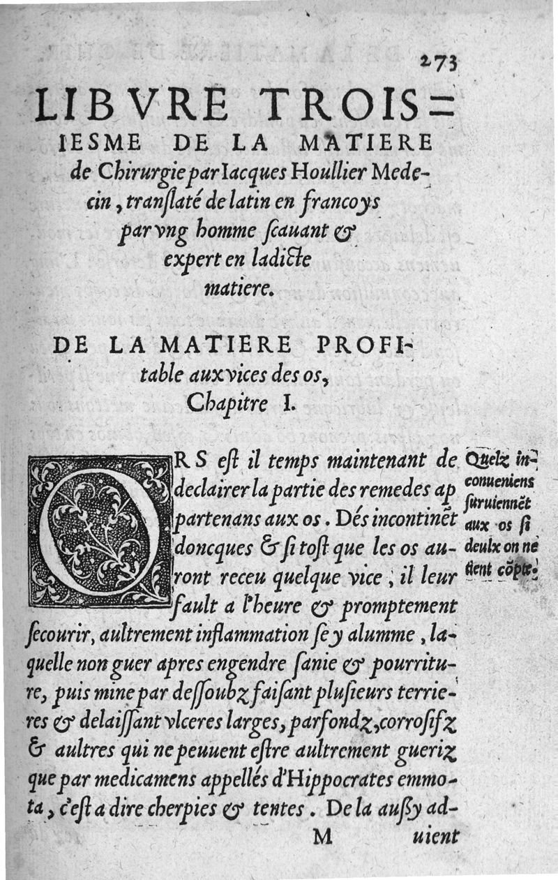 Trois livres de la matiere de chirurgie, par Jacques Houllier Estempain, medecin à Paris : translatés de latin en francoys, par un homme scavant et expert en ladicte matiere