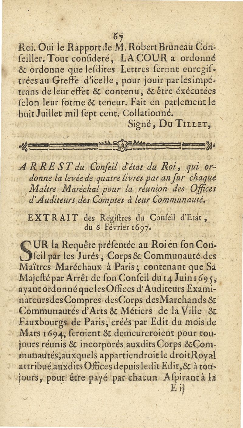 Statuts et ordonnances tant anciens que nouveaux des maistres févres-maréchaux de la ville, faubourgs et banlieue de Paris, confirmés par lettres patentes du mois d'octobre 1687, registrées au Parlement le 25 juin 1688