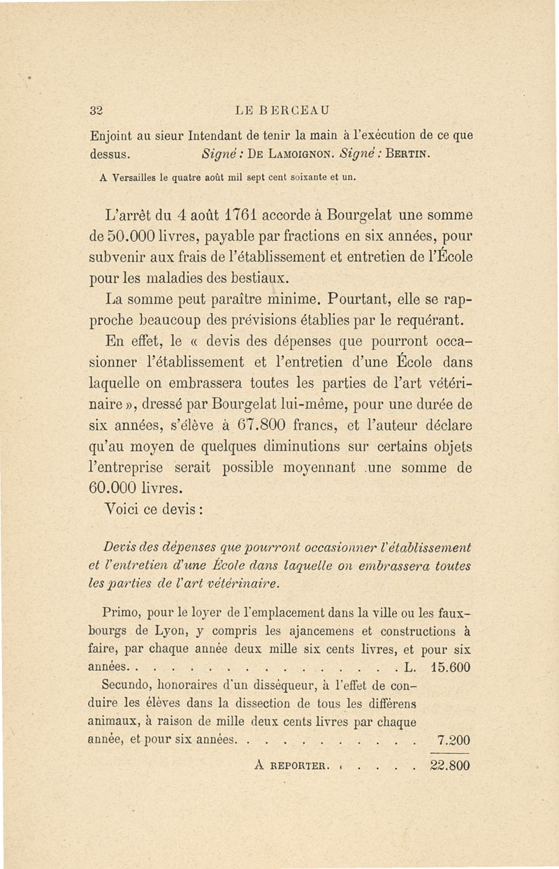 Le berceau de l'enseignement vétérinaire : création et évolution de l'Ecole nationale vétérinaire de Lyon (1761-1889) par M.S. Arloing, directeur de l'école nationale vétérinaire d'Alfort