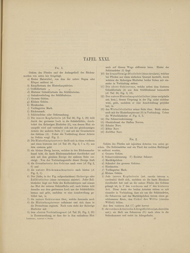 Atlas der Anatomie des Pferdes und der übrigen Hausthiere für Thierärzte und Studierende der Veterinärkunde, Landwirthschaftliche Lehranstalten und Pferdeliebhaber überhaupt. Mit erläuterndem Texte.II - Text