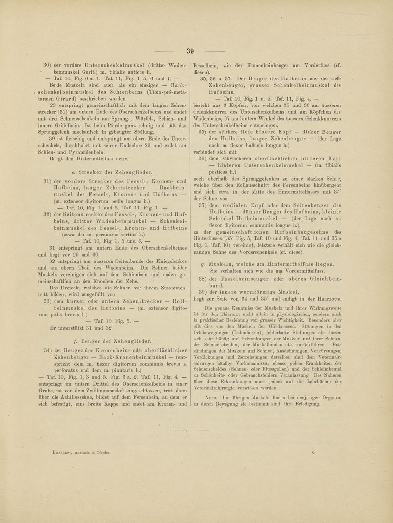 Atlas der Anatomie des Pferdes und der übrigen Hausthiere für Thierärzte und Studierende der Veterinärkunde, Landwirthschaftliche Lehranstalten und Pferdeliebhaber überhaupt. Mit erläuterndem Texte.II - Text