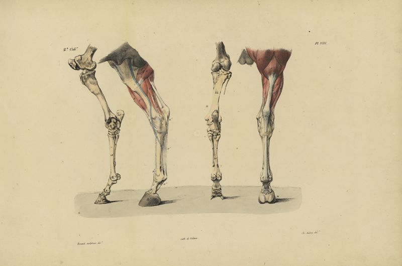 Tableau indicatif du nom des os et des muscles du cheval