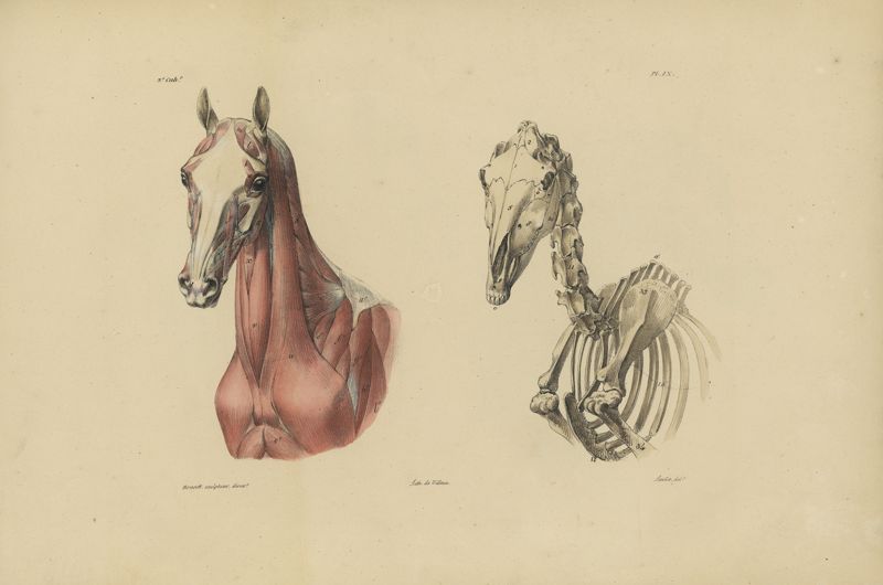 Tableau indicatif du nom des os et des muscles du cheval