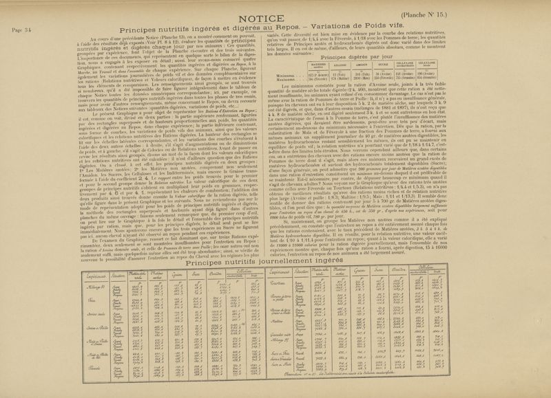 Vingt années d'expériences sur l'alimentation du cheval de trait : études sur les rations d'entretien, de marche et de travail. Composition des fourrages, digestibilié, statiques de l'eau et de l'azote