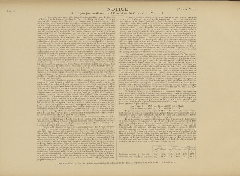 Vingt années d'expériences sur l'alimentation du cheval de trait : études sur les rations d'entretien, de marche et de travail. Composition des fourrages, digestibilié, statiques de l'eau et de l'azote