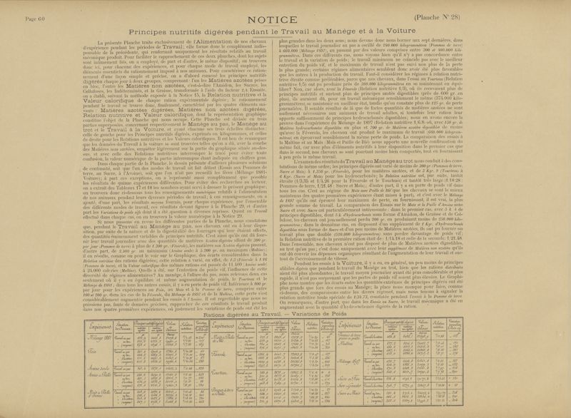 Vingt années d'expériences sur l'alimentation du cheval de trait : études sur les rations d'entretien, de marche et de travail. Composition des fourrages, digestibilié, statiques de l'eau et de l'azote