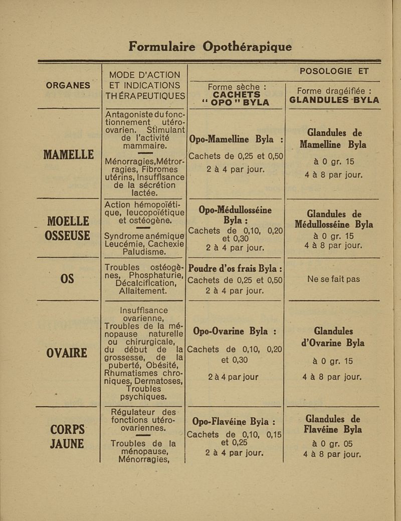 Mémento opothérapique Byla