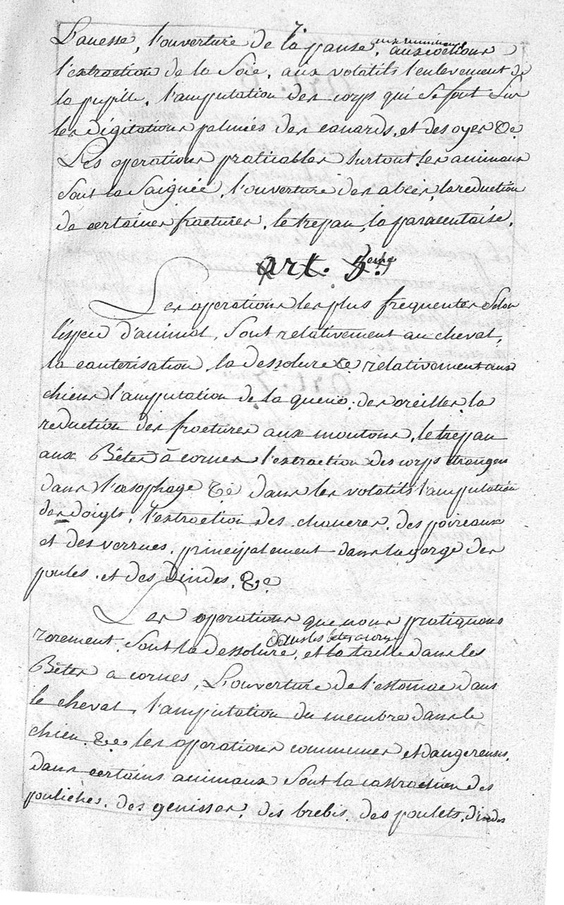 Essai sur la pratique de la chirurgie en ce qui concerne les opérations à l'usage des élèves de l'Ecole vétérinaire