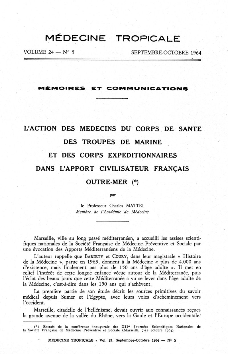 Marseille : Ecole d'application du service de santé des troupes de marine,