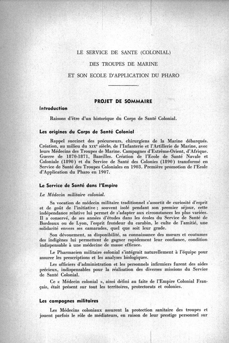 Marseille : Ecole d'application et centre d'instruction et de recherche. Service de santé des troupes de marine,