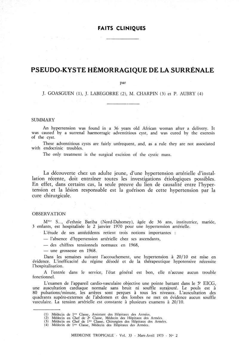 Médecine tropicale: revue française de pathologie et de santé publique tropicales