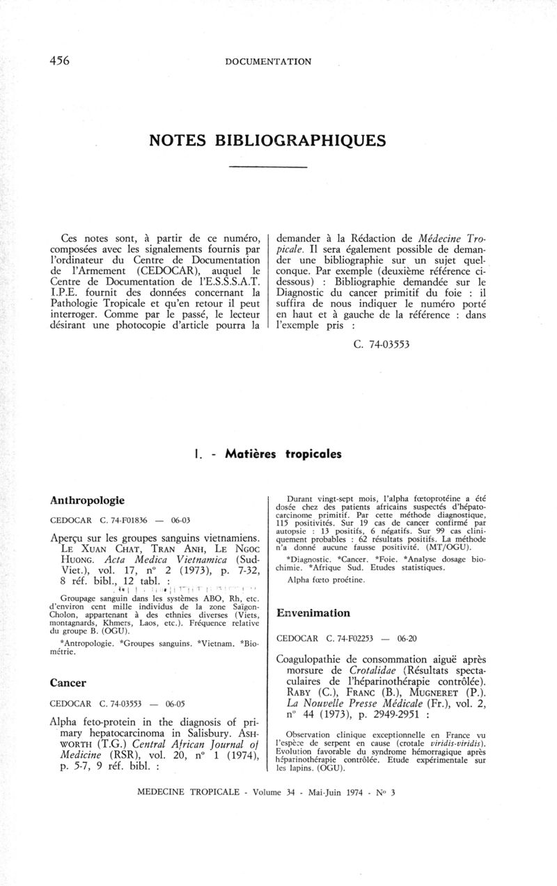 Médecine tropicale: revue française de pathologie et de santé publique tropicales