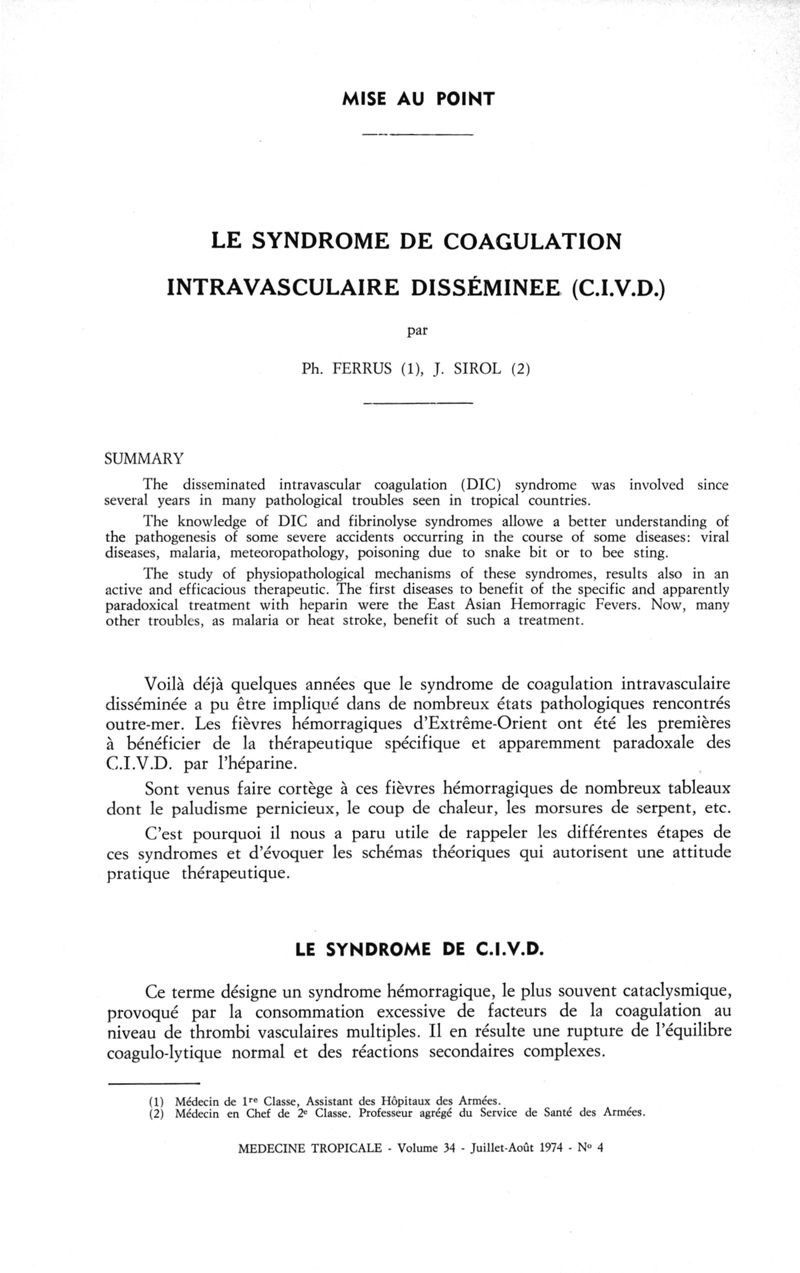 Médecine tropicale: revue française de pathologie et de santé publique tropicales