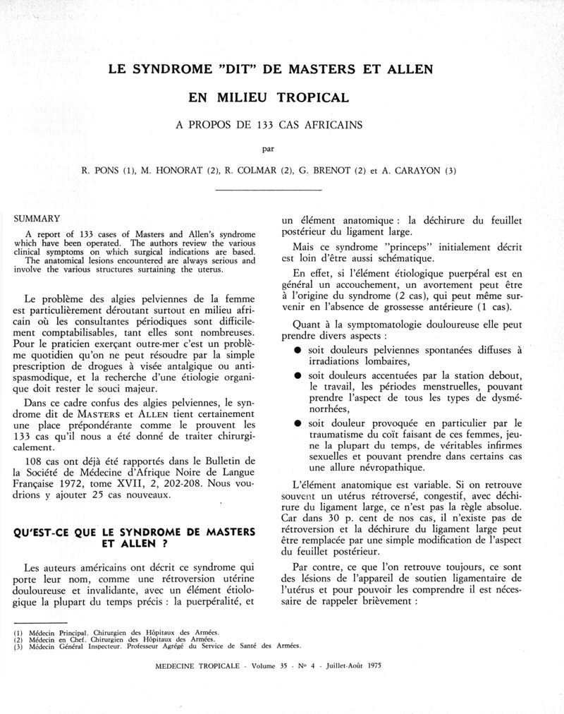 Médecine tropicale: revue française de pathologie et de santé publique tropicales