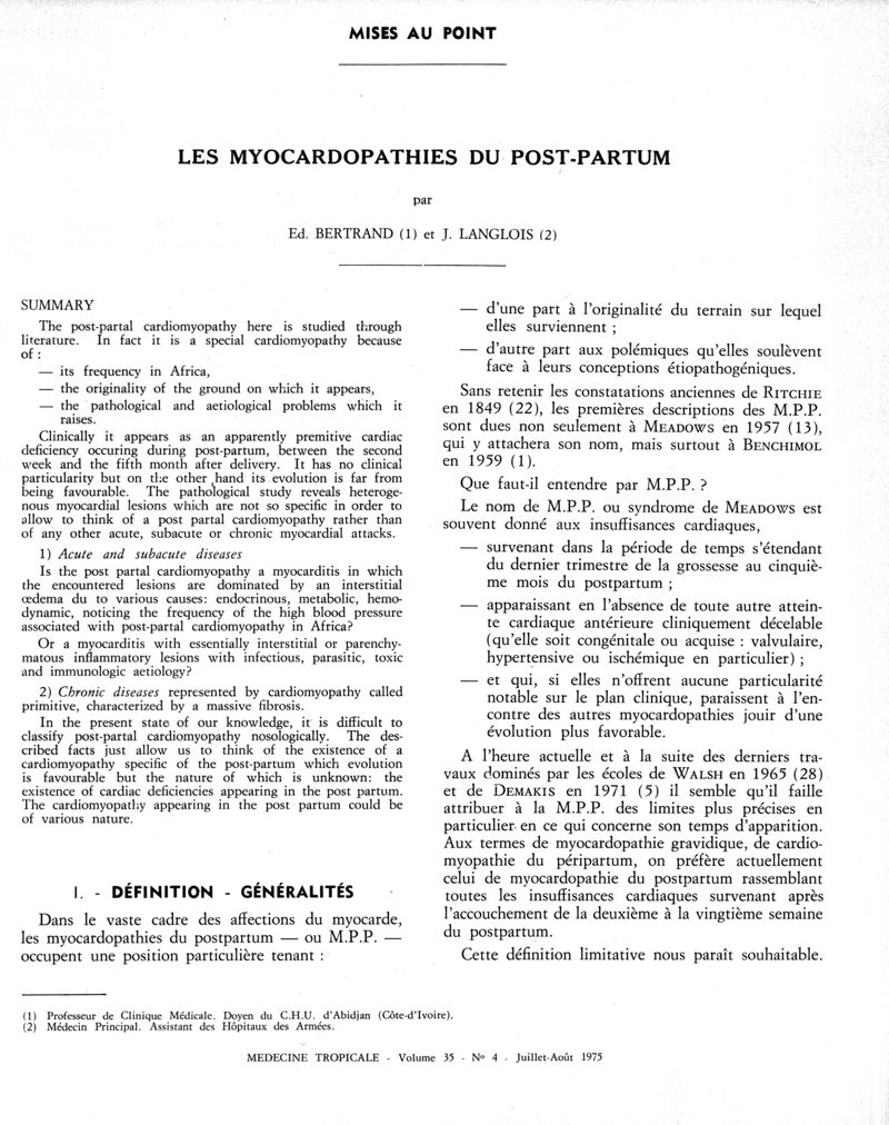Médecine tropicale: revue française de pathologie et de santé publique tropicales