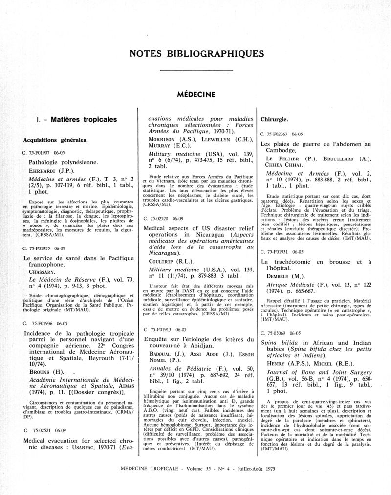 Médecine tropicale: revue française de pathologie et de santé publique tropicales