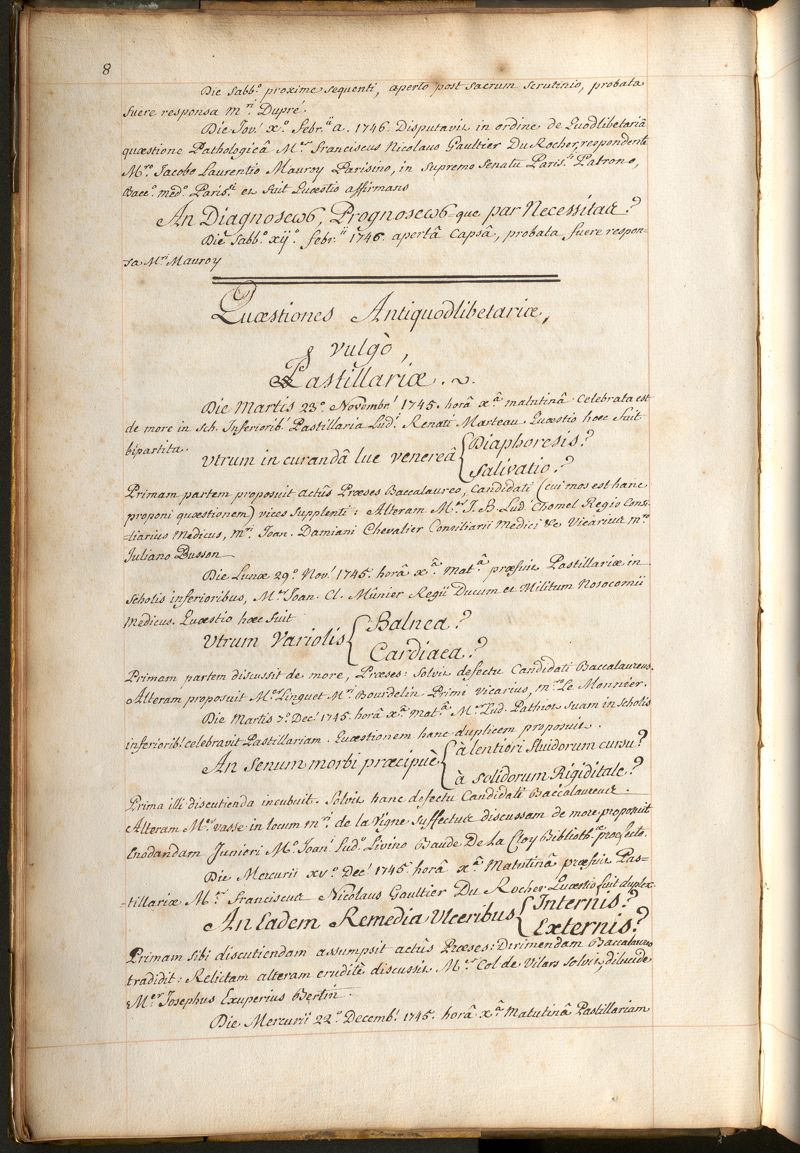 Commentaires de la Faculté de médecine de Paris. Années 1745-1756