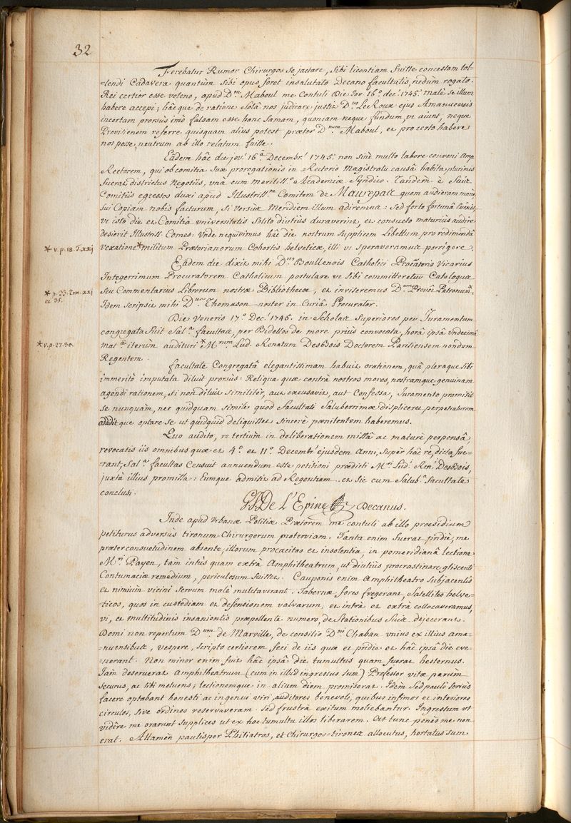 Commentaires de la Faculté de médecine de Paris. Années 1745-1756
