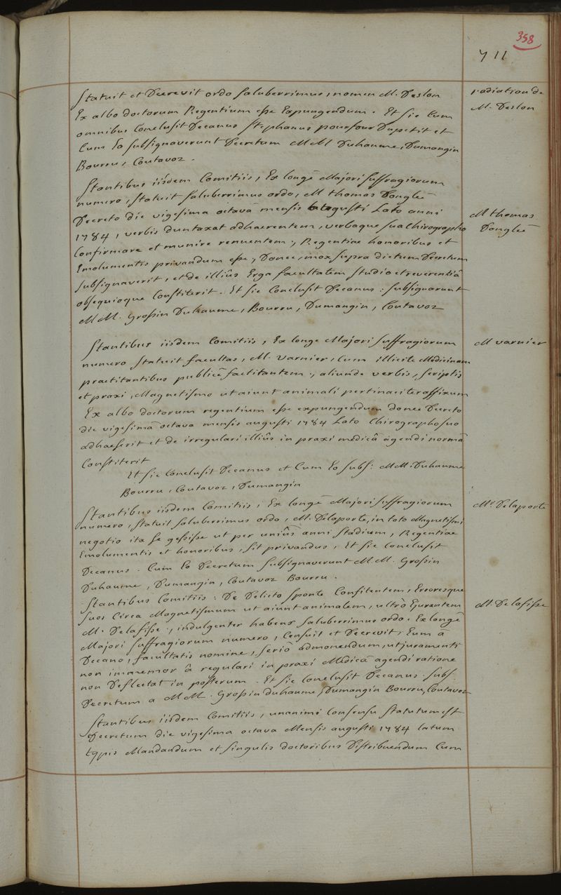 Commentaires de la Faculté de médecine de Paris. Années 1777-1786