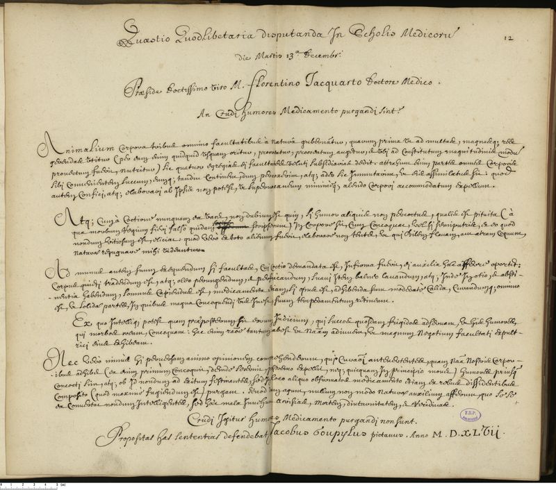 Thèse de médecine quodlibétaire manuscrite,