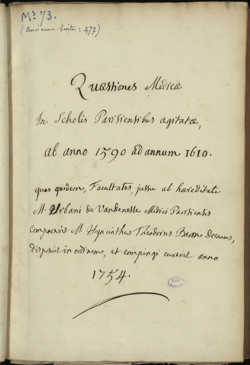 Thèse de médecine quodlibétaire manuscrite,