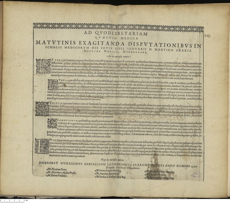 Thèse de médecine quodlibétaire imprimée,