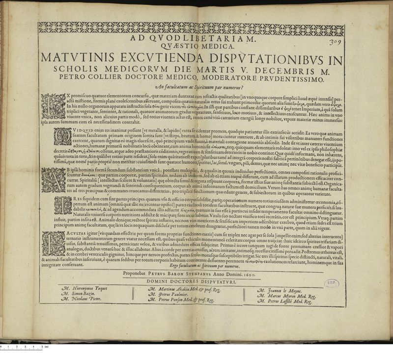 Thèse de médecine quodlibétaire imprimée,