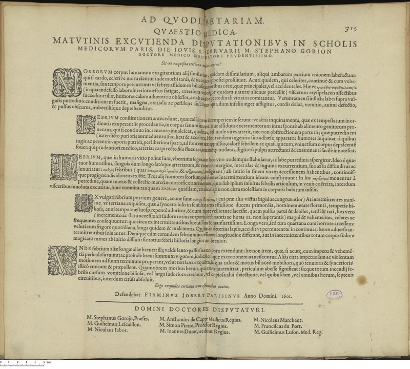 Thèse de médecine quodlibétaire imprimée,