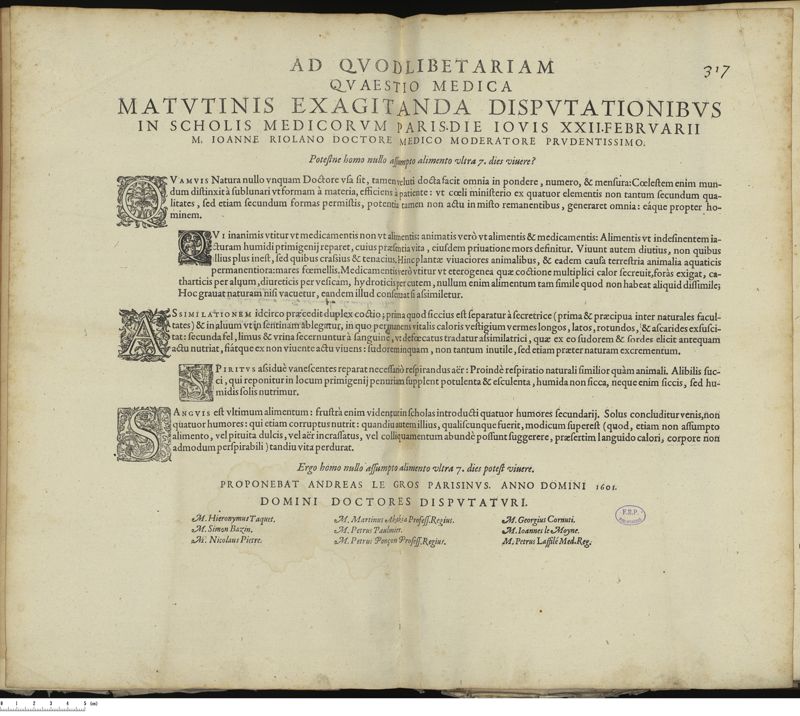 Thèse de médecine quodlibétaire imprimée,