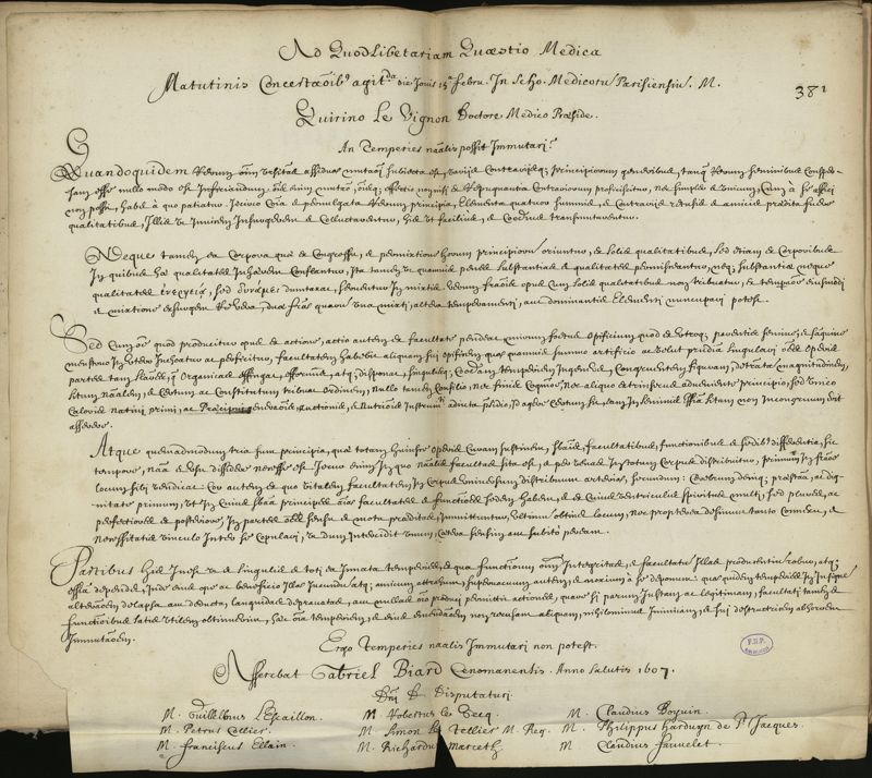 Thèse de médecine quodlibétaire manuscrite et imprimée,