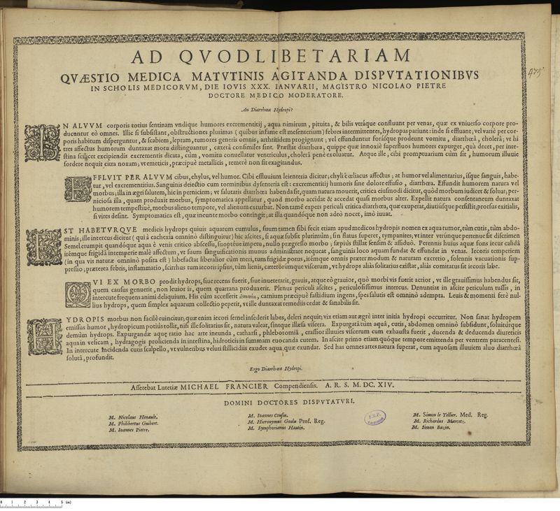 Thèse de médecine quodlibétaire imprimée,